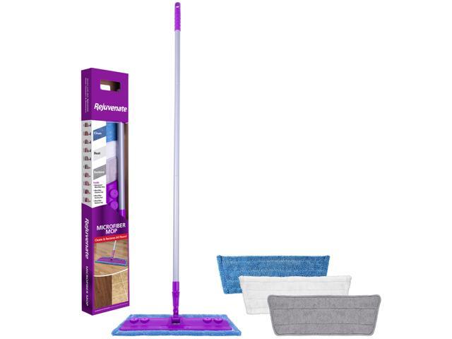Rejuvenate Microfiber Mop with 3 Reusable Microfiber Pads The Rejuvenate Microfiber Mop Kit is designed to be an easy-to-use kit with everything you need to make your floor sparkle. This kit features a durable mop with an extra-large pivoting head to make clean-ups fast and easy. Each reusable microfiber pad is specially designed to maximize cleaning and restoration. The white pad is the dusting pad that attracts dust and picks up everything in its path. The blue pad is the super-absorbent cleaning pad that traps dirt and cleans grime in no time. The gray pad is designed to apply Rejuvenate floor restoration products fast and effective. And best of all you don t have to buy disposable mop pads. You can reuse the microfiber pads over and over again up to 400 times saving you money. Easy to use on all floors. - Kit includes: extendable mop with extra-large pivoting head and 3 reusable microfiber pads - White pad is for dusting blue pad is for cleaning gray pad is for restoring restore with Rejuvenate all
