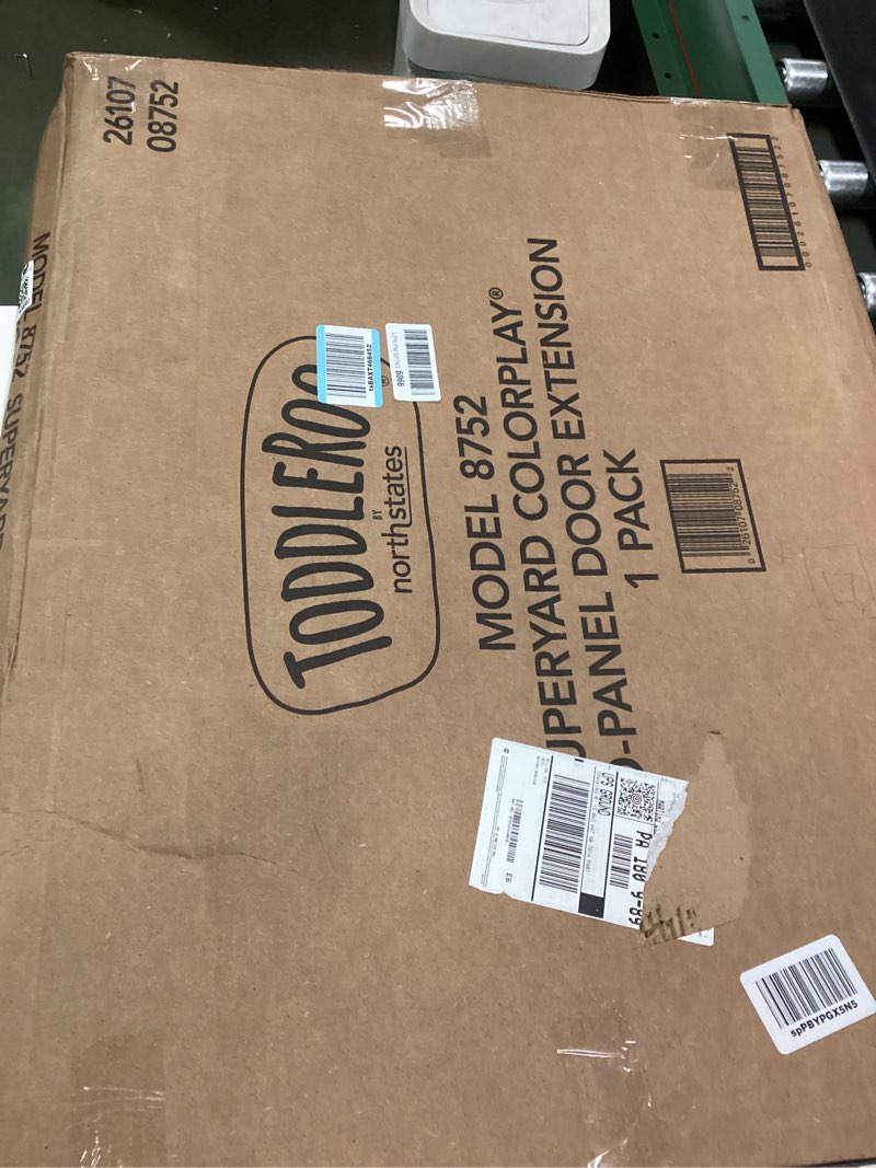 The Toddleroo by North States? Superyard Colorplay? Two-Panel Door Extension allows you to increase the Superyard Colorplay from a 6-panel to an 8-panel play yard. The Two-Panel Extension is made up of one yellow panel and an easy access red door with a purple u-frame panel. The additional panels increase the size of the Superyard Colorplay from 18.5 square feet to 34.4 square feet, that?s almost 7 feet across! This item is sold separately from the Superyard Colorplay (model number 8766 and 8769).