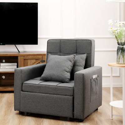 CURRENT BID: $31.07Latitude Run® Convertible Chair Bed 3-in-1, Folding Sleeper Chair Bed, Multi-functional Adjustable Recliner, Sofa, Bed, Single Bed Chair With With Pillow For Apartment, Living Room, Dark Gray